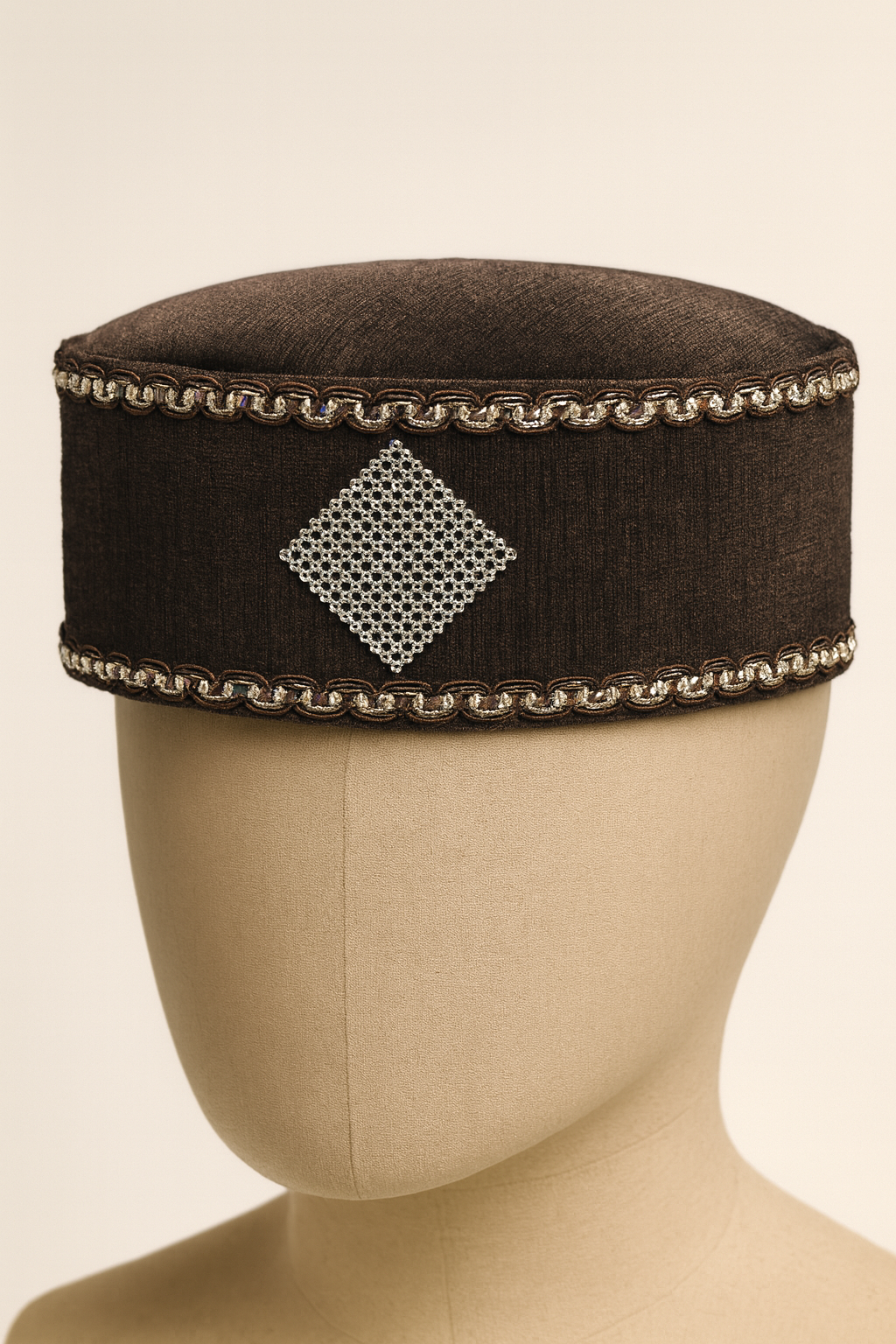 ceremonial styles, this headwear pairs effortlessly with kaftans, agbadas, or formal looks. Breathable lining for comfort; structured crown retains its shape. Ideal for weddings, festivals, and special occasions.