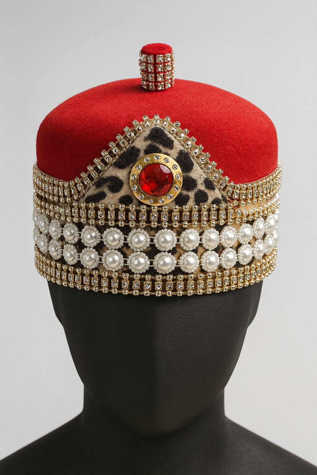 Hand-finished kufi cap crafted in plush velvet with precision beadwork. Inspired by Nigerian ceremonial styles, this he