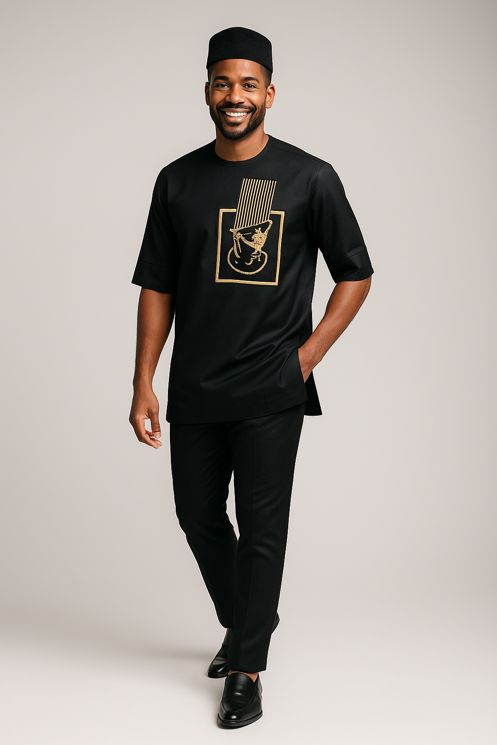 This look embodies cultural pride while exuding confidence and class. Perfect for weddings, cultural celebrations, or high-profile occasions where presence matters, this outfit makes a statement without saying a word.